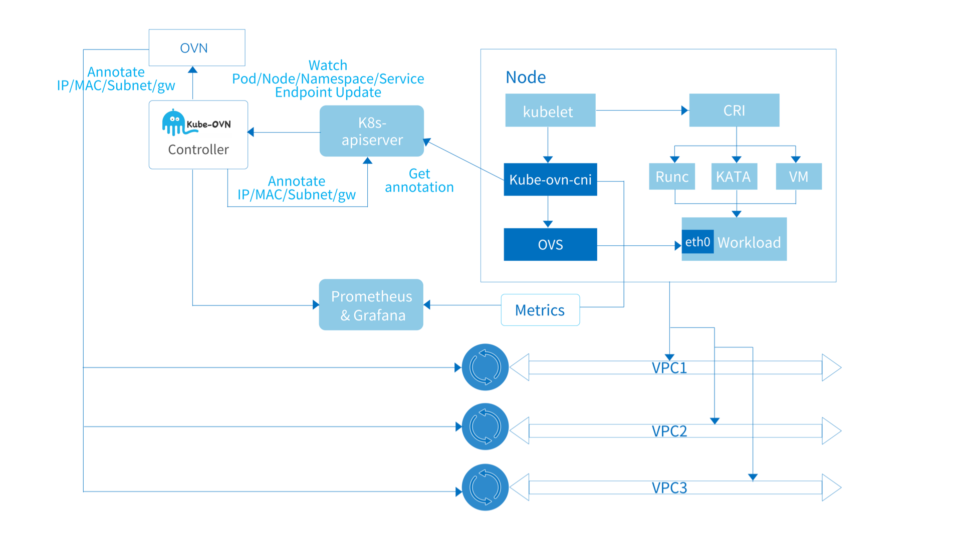 kube-ovn-cni will configure the specific network to perform the appropriate traffic operations,